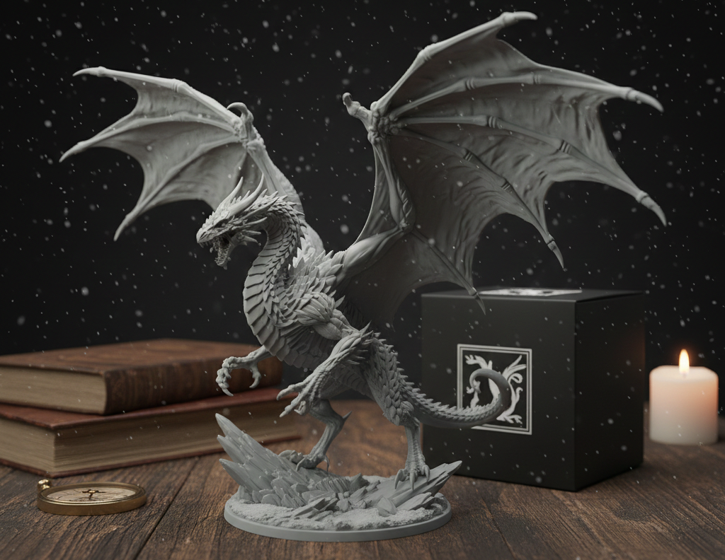 Cette pièce imposante capture la puissance du prédateur aérien avec des textures d’écailles et de membranes alaires extrêmement fines. Elle nécessite un assemblage simple pour garantir une intégrité structurelle maximale après peinture.